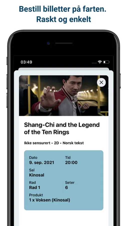 • Velg film, velg tidspunkt, velg seter, og betal med et klikk