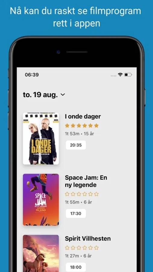 • Rask og god oversikt over kommende filmer, populære filmer og program for de neste dagene.