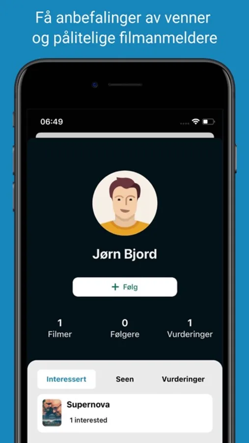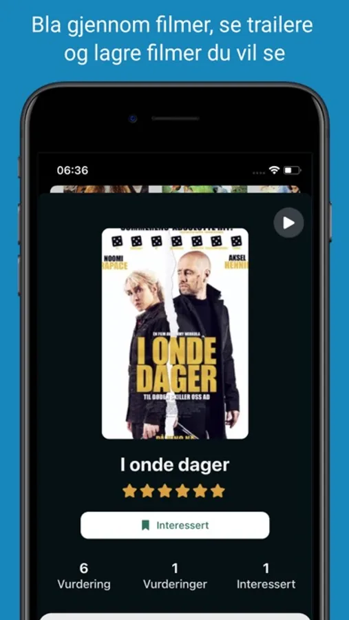 • Merk filmer du gleder deg til som "interessert", og få en påminnelse når de kommer på kino.