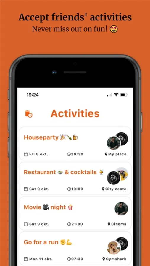 With TapToChill you get a nice overview of your friend's activities, which you can join with the click of a button. Never miss out on fun with TapToChill.