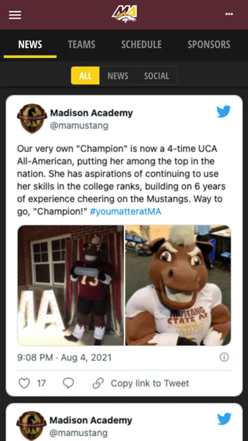 The Madison Academy Mustangs app is provided and operated by Madison Academy and features LIVE scoring, schedules, news updates, and rosters for all participating MA teams and organizations.