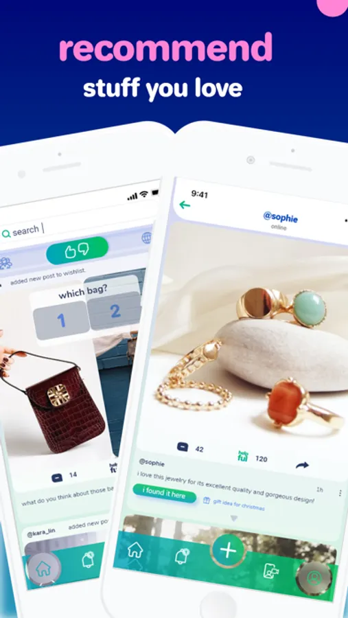 We found solutions by designing a new app where people can share their shopping recommendations and wishlist with each other and have the option to get advice while they shop online through screen sharing.