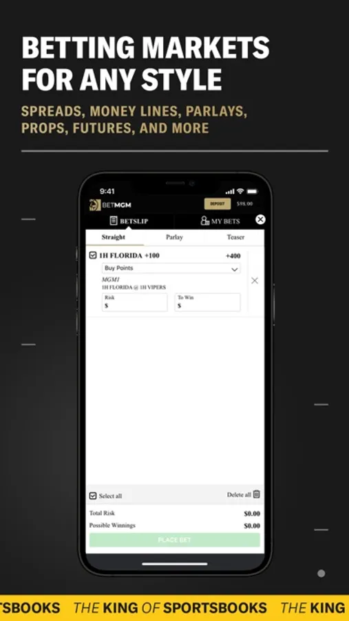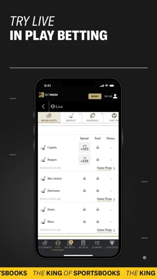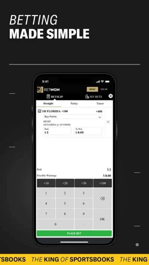 The BetMGM Sportsbook app brings you closer to the sports you love giving you real-time betting odds, and tons of different betting formats from moneyline and point spread bets to parlays and futures. Not to mention the player props and live, in-game betting options!