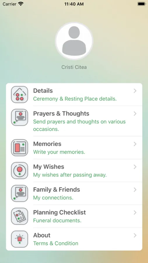 My Wishes - Keep track of all your wishes, for your friends and family, upon passing away. Although this is not contractual binding, you can make your wishes knows to people around you.