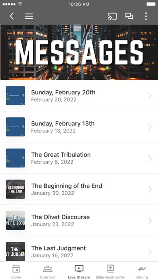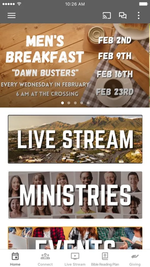 This app will help you stay connected with the day-to-day life of our church. With this app you can: watch live streams or listen to past messages; stay up to date with push notifications; share your favorite messages via Twitter, Facebook, or email; and download messages for offline listening.