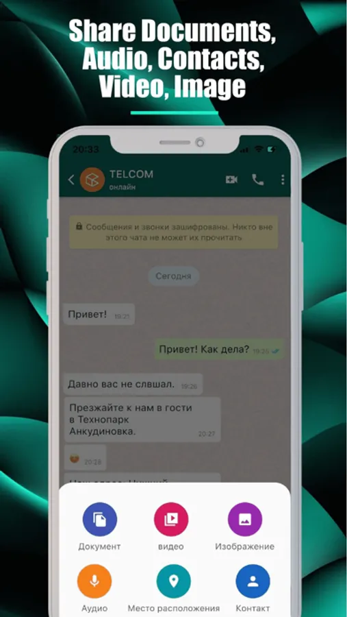 Оставайтесь на связи с родными и близкими. Групповые чаты защищены сквозным шифрованием. Используя мобильное устройство или компьютер, вы можете обмениваться сообщениями, фотографиями, видео и документами.