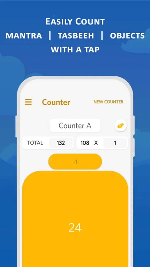 With easy counter you can do 108 Counts, Count Objects, Mantra Chanting (Mantra Counting), Ganesh Mantra Chanting, Shiv Mantra Chanting, Tasbeeh Counting, Easy Count Things, Click Counter, Digital Counter, Tap Counting,