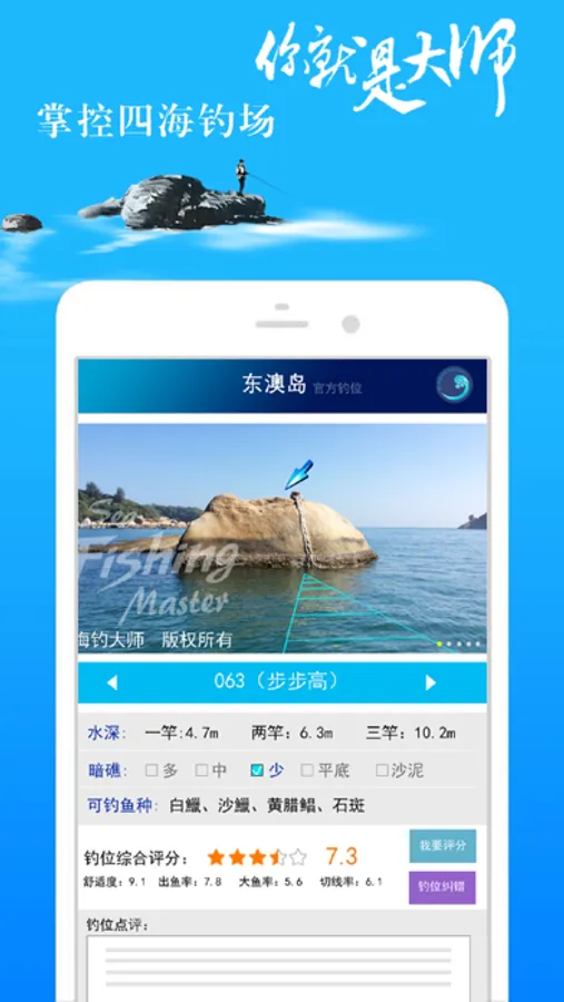 这里有更精确的海军版潮汐数据;有钓手梦寐以求的全国钓场每一个钓位的各类数据;有全面且系统的海钓技术藏经阁;有功能强大的图文穿插微 论坛;有每年大量的比赛及活动;有成熟强大的内置信息系统,实现图、文、声音等即时聊天,可以建好友群;有完全属于海钓圈的移动商城等。