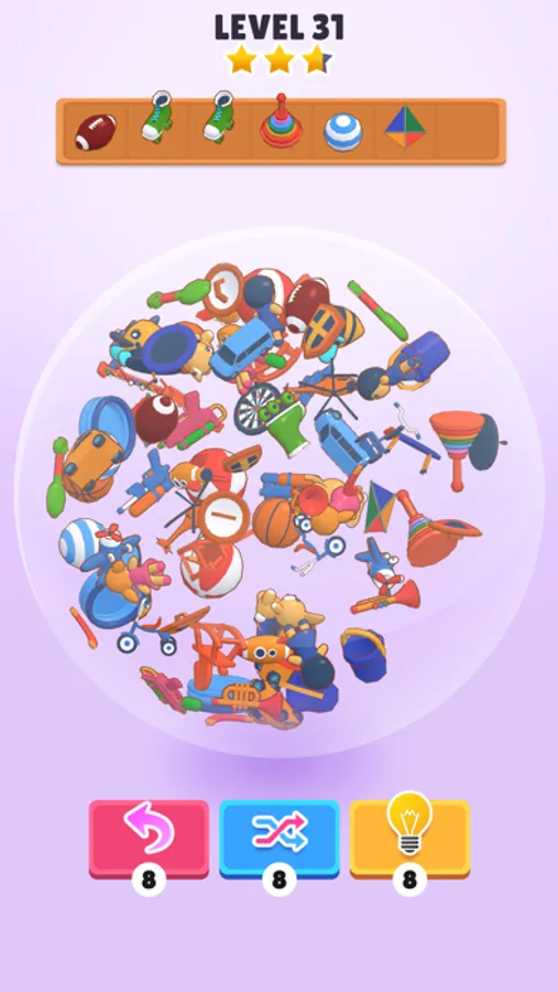Just like a classic triple match game, the goal in the puzzle is to find & match all the elements presented.