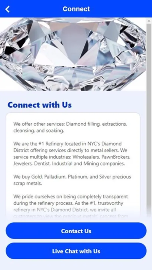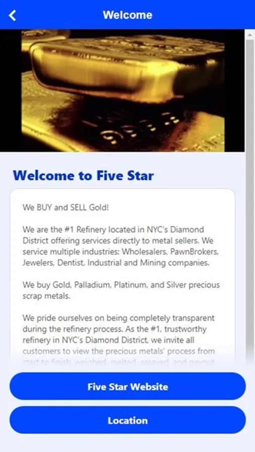This app is intended for people who are interested in buying gold or selling precious metals. We are the #1 Refinery service company located in the heart of NYC, serving this industry for 40+years.