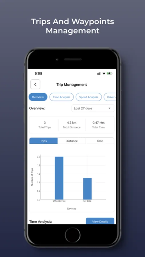 5. Trip details with stoppage, time analysis, speed analysis and driver analysis