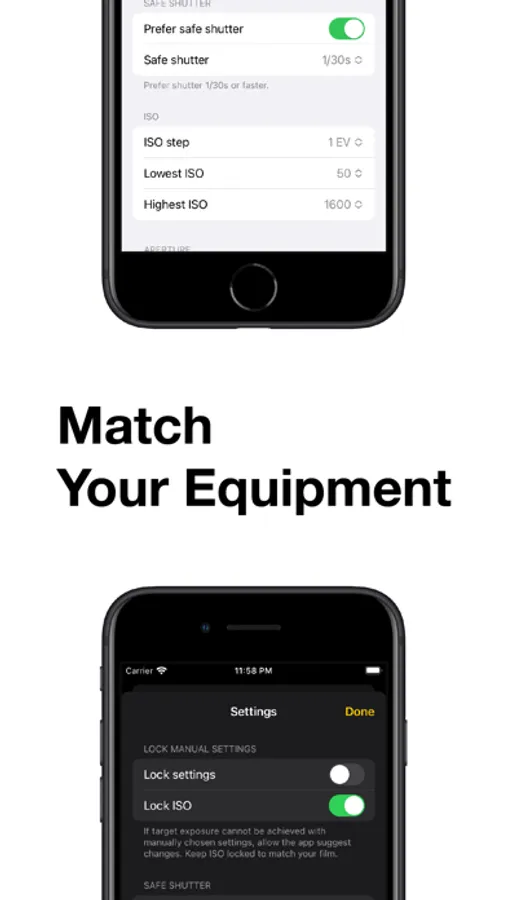 Pick a preferred slowest shutter speed you want and Light Lamb will match it. If the scene is too dark, Light Lamb automatically pick a slower shutter speed beyond the safe shutter to achieve the correct exposure.