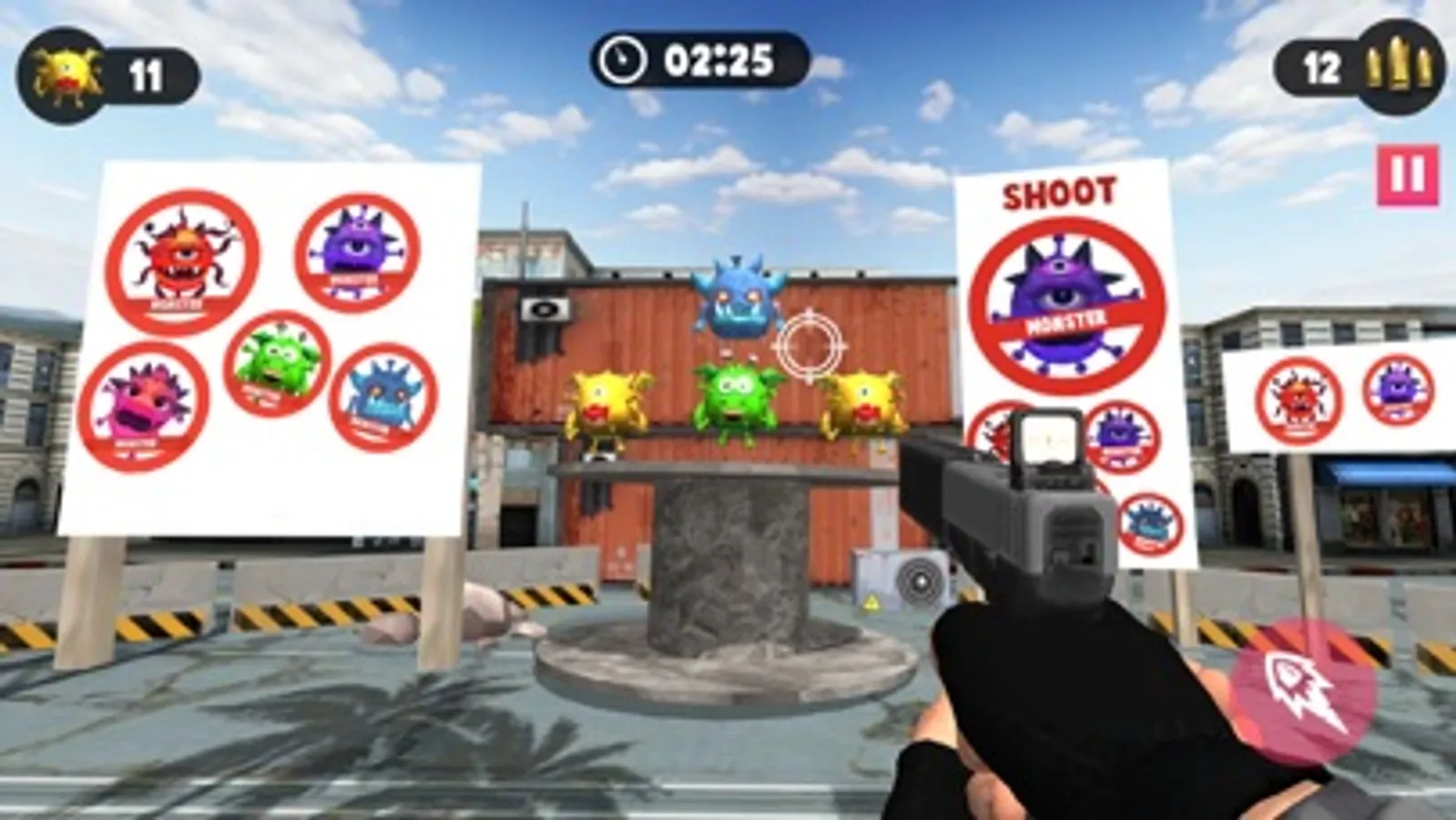 Be heroic and overachiever!!! Shoot the target to earn points and earn the title of monster shooting hero with the tag " impossible achiever " attached to it. Enjoy thrilling missions of 3d gun shooting games, be a professional shooter and show your shooting skills to impress your friends and other players. Shooting an object from a large range is very tough in a gun shooter range. Gun shoot games provide a shooting range mode to shoot targets from different ranges. Missed shots will print on buts, so avoid hitting other objects and try shooting the targets in shooting games. Enjoy the fun of monster shooter 3D.