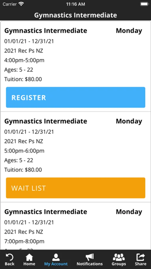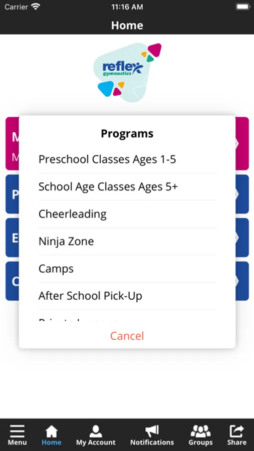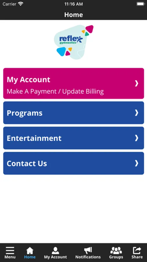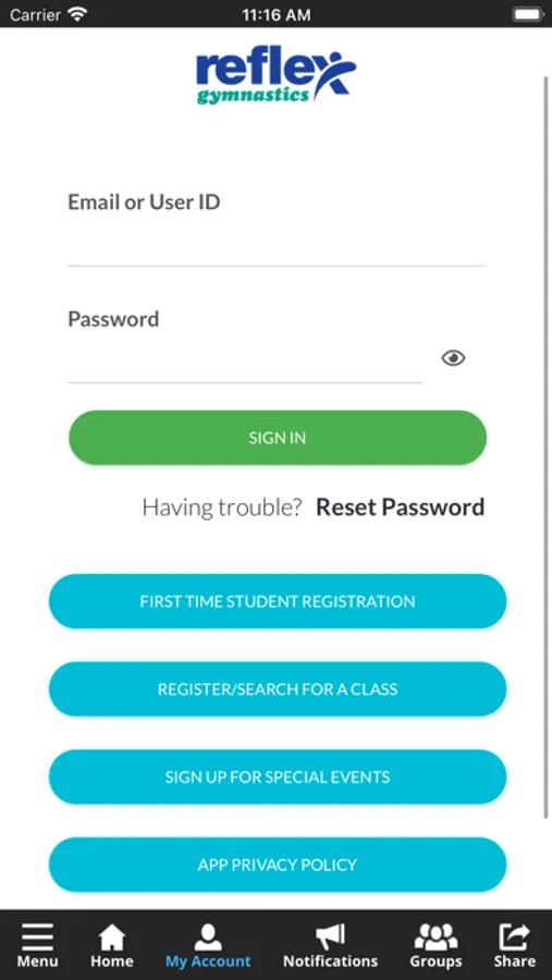 The Reflex Gymnastics app allows you to manage your account with ease, register for classes, parties and special events. You'll also receive important notifications about class changes, closings, registration openings, special announcements, and upcoming events.