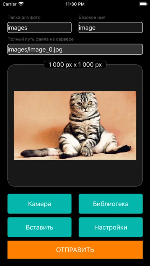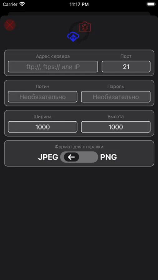 Настройки сервера, масштабирование всех фото до заданных размеров, автоматическая генерация имен файлов, выбор папки для выгрузки.