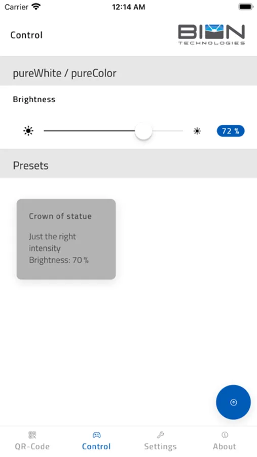 The BIONcontrol app allows you to easily communicate with your IOT fixture or IOT system. Simply set up the start settings for the fixtures or flexibly configure entire fixture networks directly from your app. The outstanding usability of the app and the user based access profiles design the exposure to large light installations in a very intuitive manner.