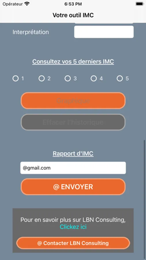 FR: Outil de calcul de l'indice de masse corporelle ("IMC") et de suivi de son évolution dans le temps grâce à sa fonctionnalité d'enregistrement des résultats (stockés dans votre mobile et consultables ultérieurement) et de visualisation graphique. L'outil fournit également une interprétation instantanée du résultat d'IMC obtenu.