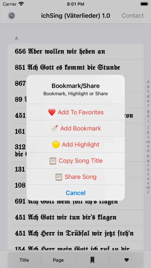 It's fast and easy to find what you're looking for in ichSing V. You can browse the entire collection or do a quick search for that specific song you're after. Once you've found it, bookmark it or add it to favorites for easy retrieval next time. You can even share a verse, with a friend, or print it out.