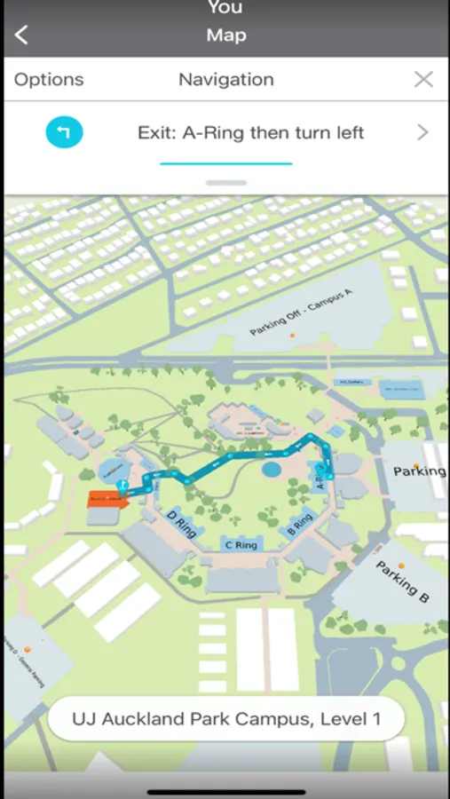 The UJ Wayfinder Mobile app is designed to assist visitors and UJ Community on the campus with routing between the buildings and/or meeting rooms.