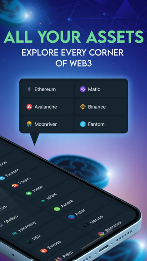• Multi-chain (Ethereum, Polygon, Binance, Avalanche, Moonriver, Solana, …), the app supports more than 13 blockchains.