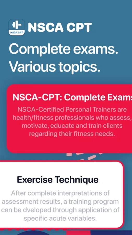 Pass your NSCA-CPT® exam with flying colors! Boost your confidence in passing the first time with our mobile app and a personal study plan based on your current skill and requirements.