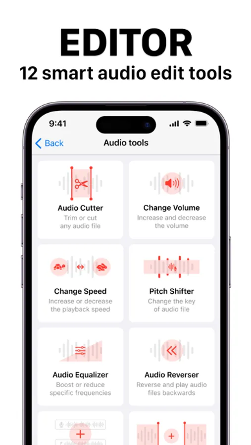 This app is perfect for anyone who needs to capture audio notes, record interviews, or create audio projects. With our app, you can trim or cut any audio file, increase or decrease the volume, change the playback speed, and even change the key of the audio file.