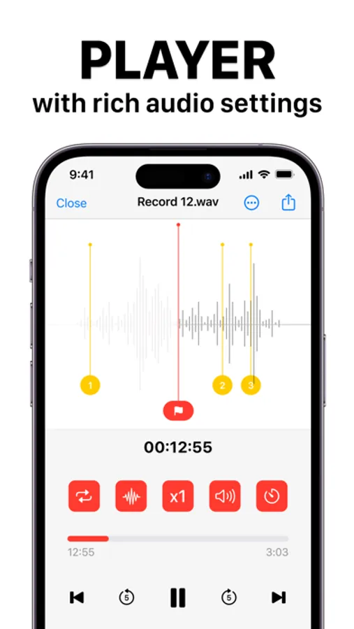 Our app also offers speech-to-text transcription for the most common languages, and includes a built-in text editor to create text notes. The player module includes many features like audio effects, background audio effects, pitch settings, decibel level settings, playback timer, flags for audio record, voice-to-text transcriber, airplay feature, and a fully working audio equalizer for real-time editing.