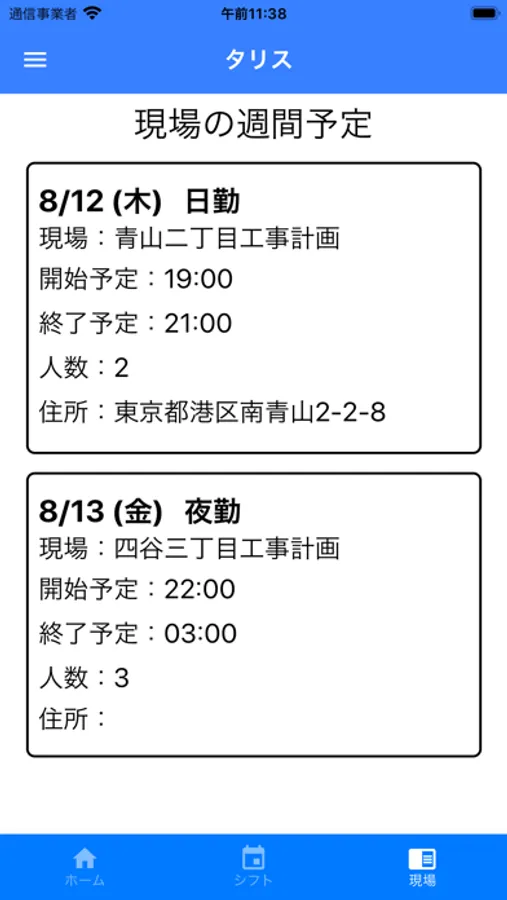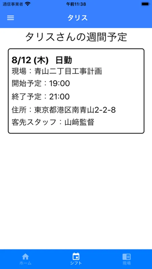 本アプリでは、管制アプリで登録されたシフトの参照、上下番報告を行うことが出来ます。