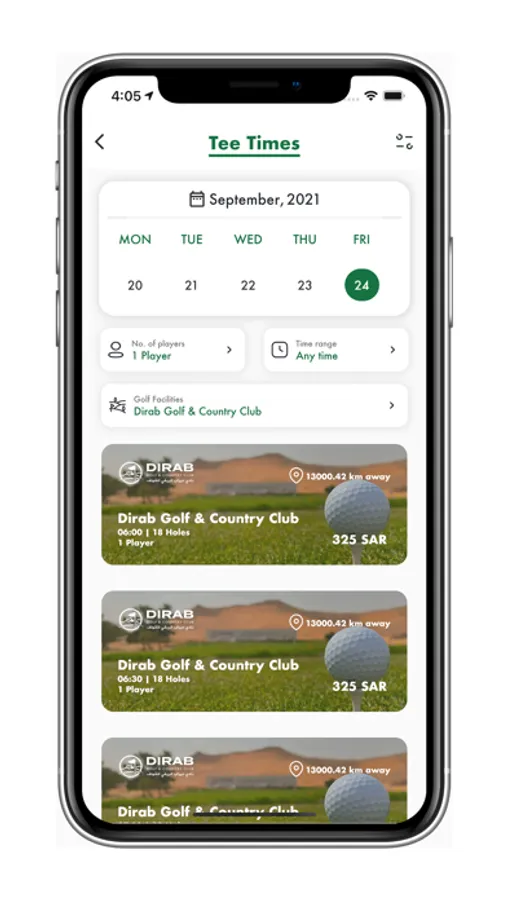 Golf Saudi is an application which supports you in making an easier and simpler Tee Times booking. You can book Tee Times quickly and efficiently at your favorite Golf club in Saudi Arabia.