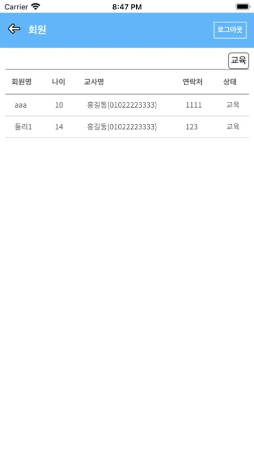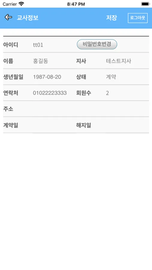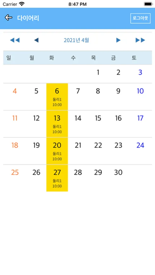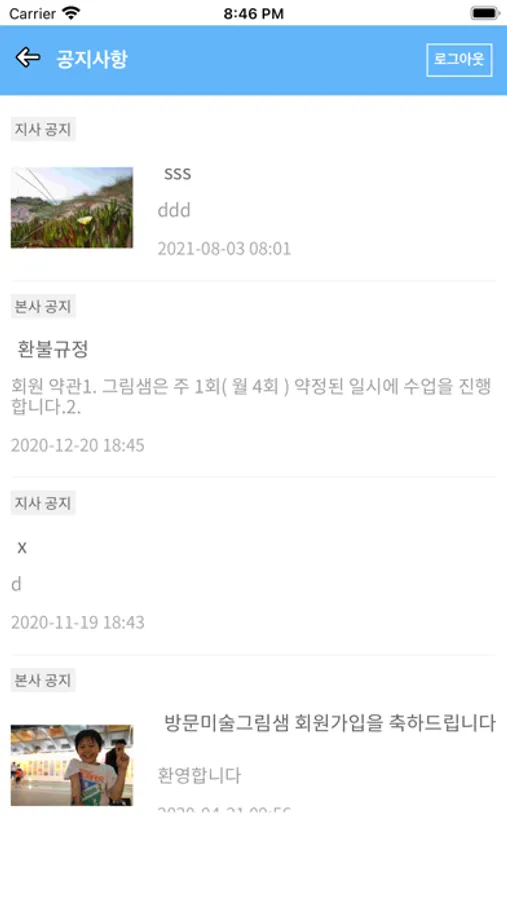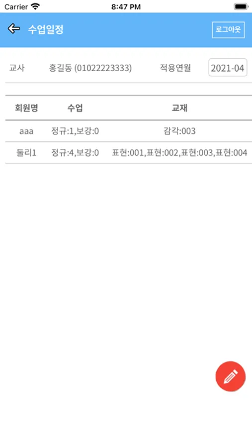 선생님 : 수업일정 관리 및 내용을 업데이트 합니다