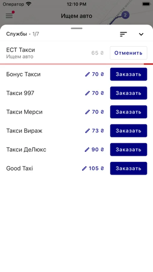 После расчета стоимости можно заказывать авто в любой службе из списка. Также, можно паралельно искать авто в нескольких такси одновременно, а потом - без проблем отменять в тех службах, где машина не нашлась.