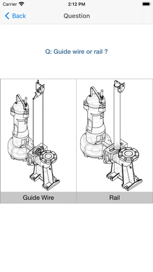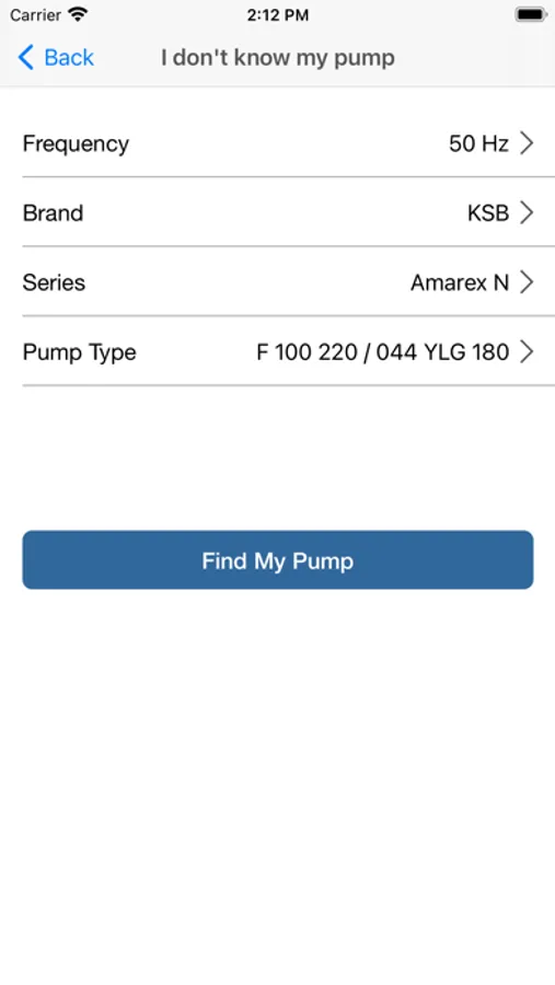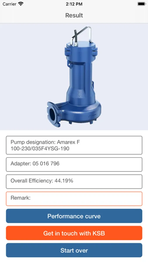 You can also select the guide system, at which point the KSB app will inform you of the right model, claw and characteristic curve of the matching Amarex replacement pump.