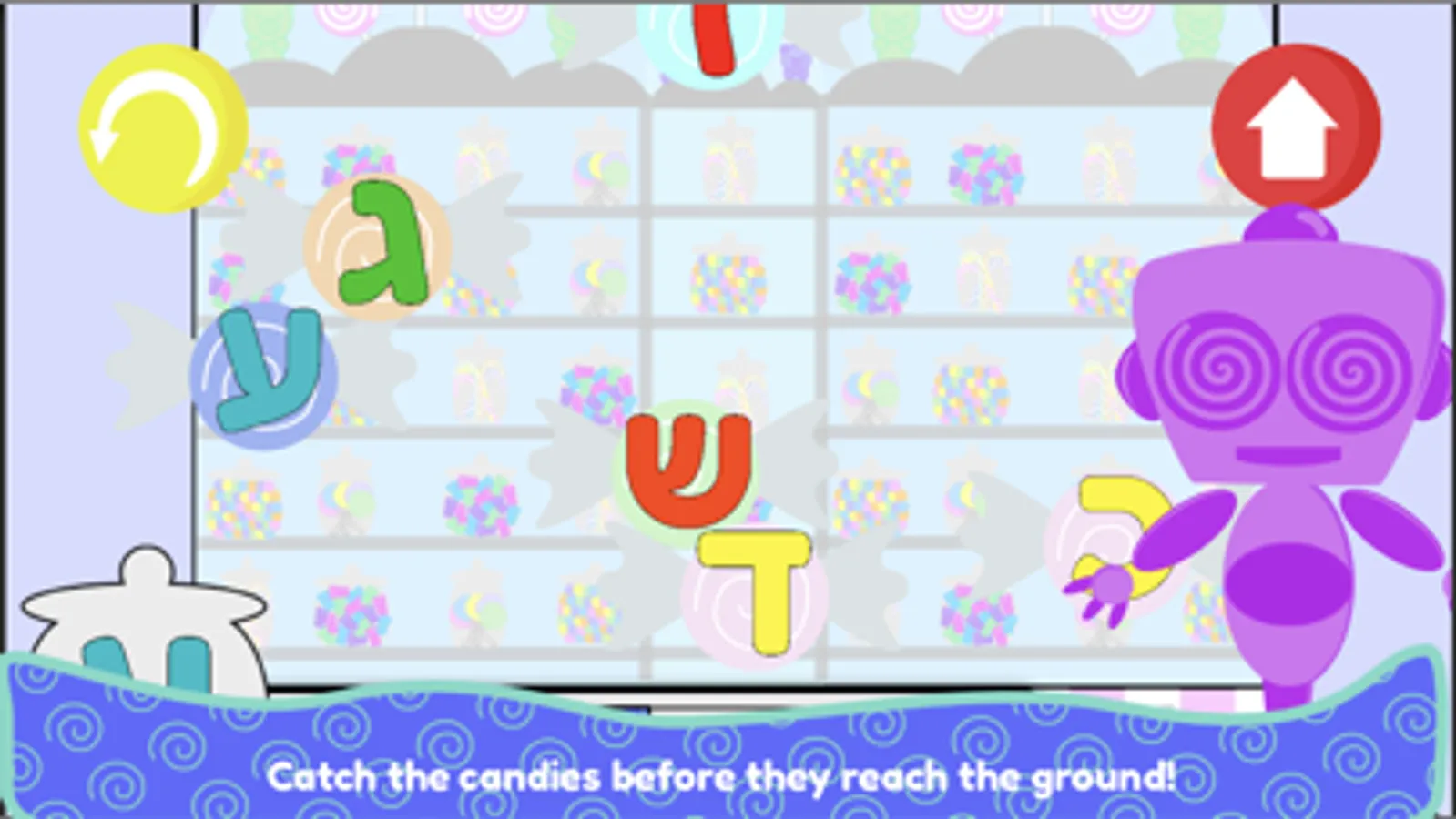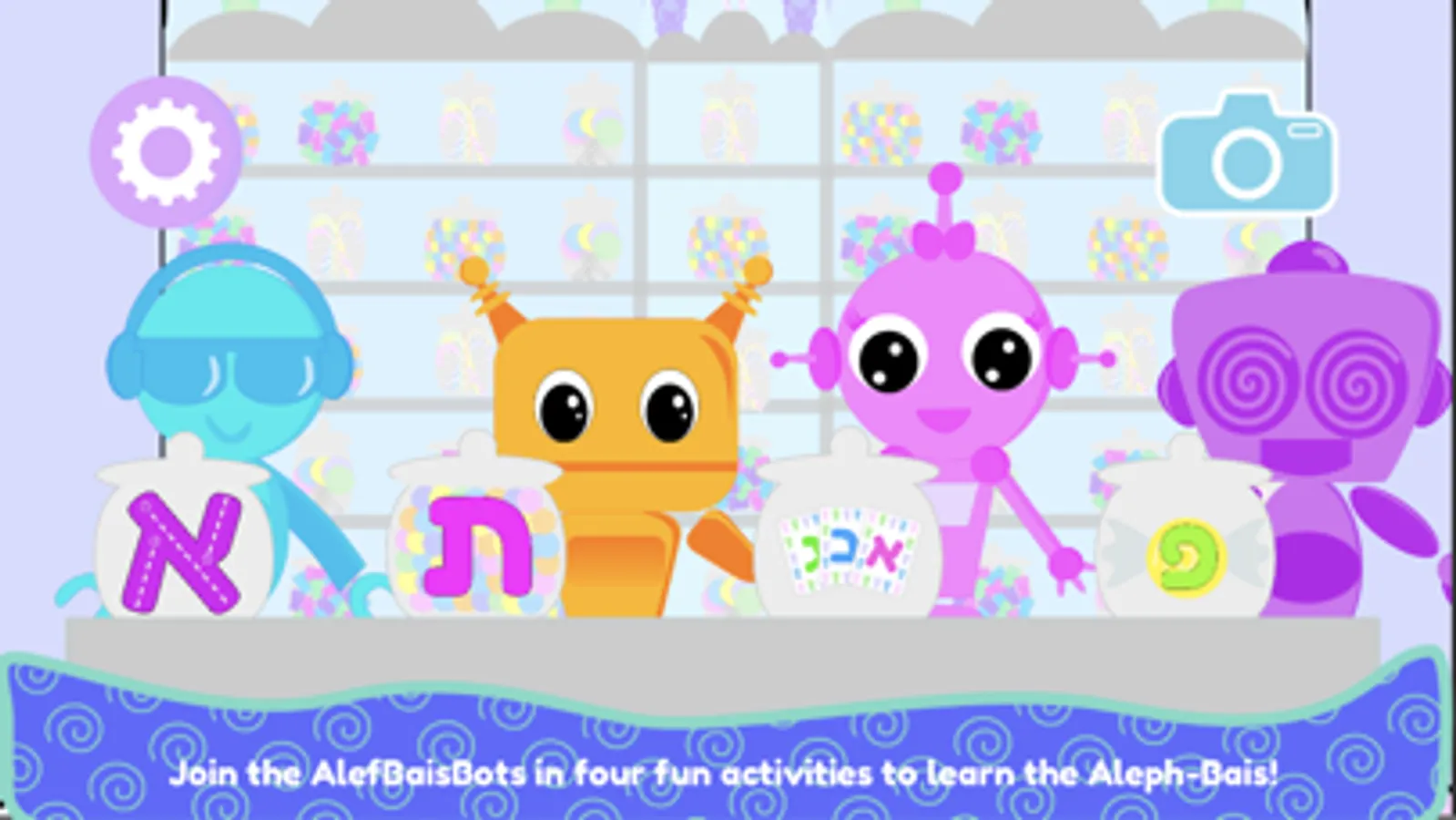 The AlefBaisBots candy store is open for business! Children can play one of the four games to reinforce their Alef-Bais skills:
