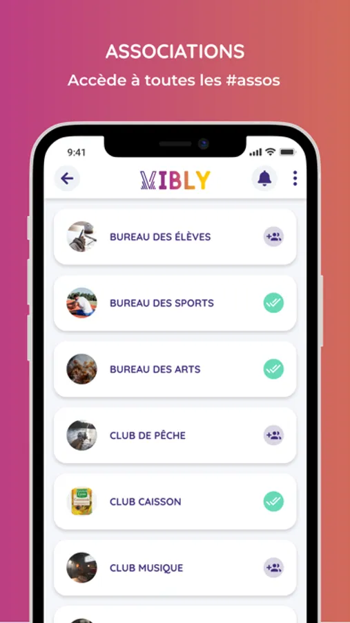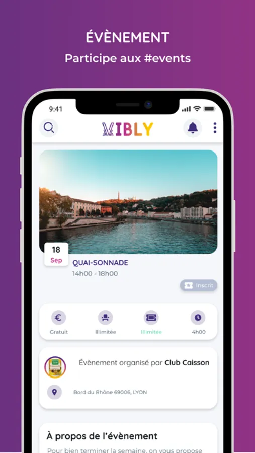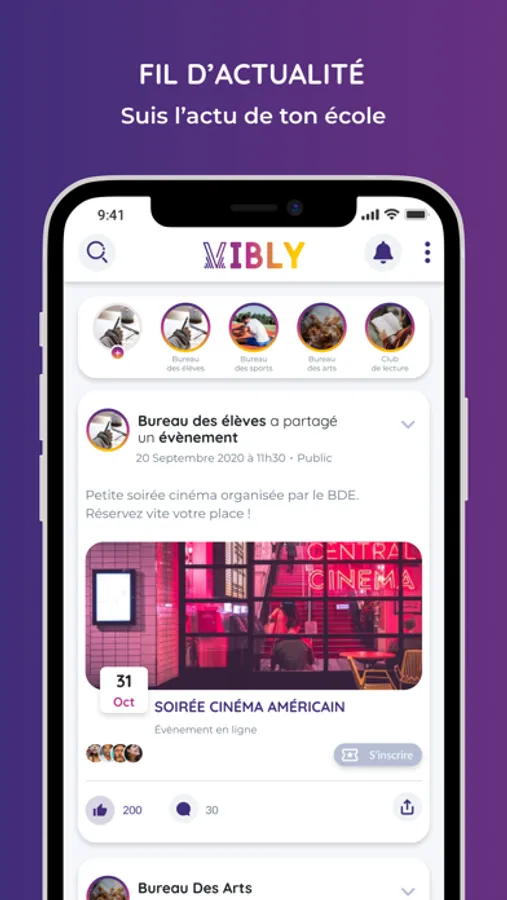 Suivez l’actualité des associations de votre école, planifiez et réglez directement vos événements depuis l’application, communiquez avec vos amis et partagez un moment de votre vie étudiante. L’objectif de Vibly est de simplifier les rencontres et les intéractions entre les étudiants d'une même école, tout en fluidifiant la gestion pour les différents acteurs étudiants.
