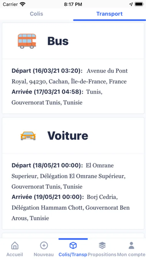 Vous avez un colis (des documents, des affaires...) à envoyer au moindre frais et rapidement? Hezzly partage avec vous le chemin de tous les transporteurs particuliers qui passent pas loin de vous.