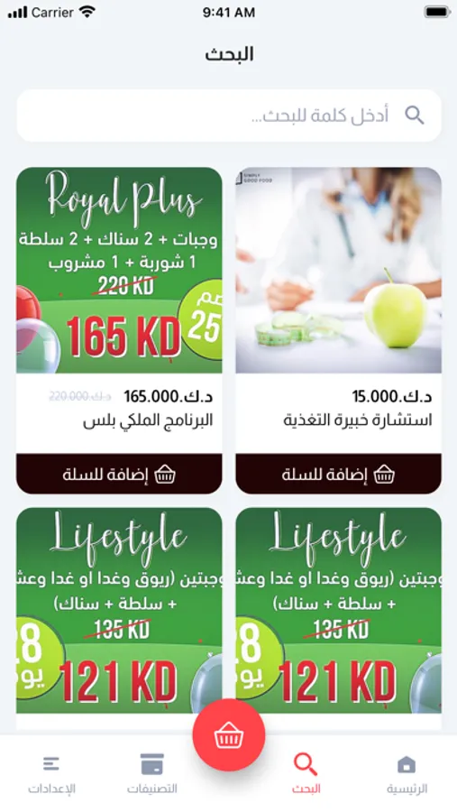 Hot and cold sandwiches, juices, pizza, various dishes, monthly subscriptions, and supports the local electronic payment service and shipping to all areas of Kuwait