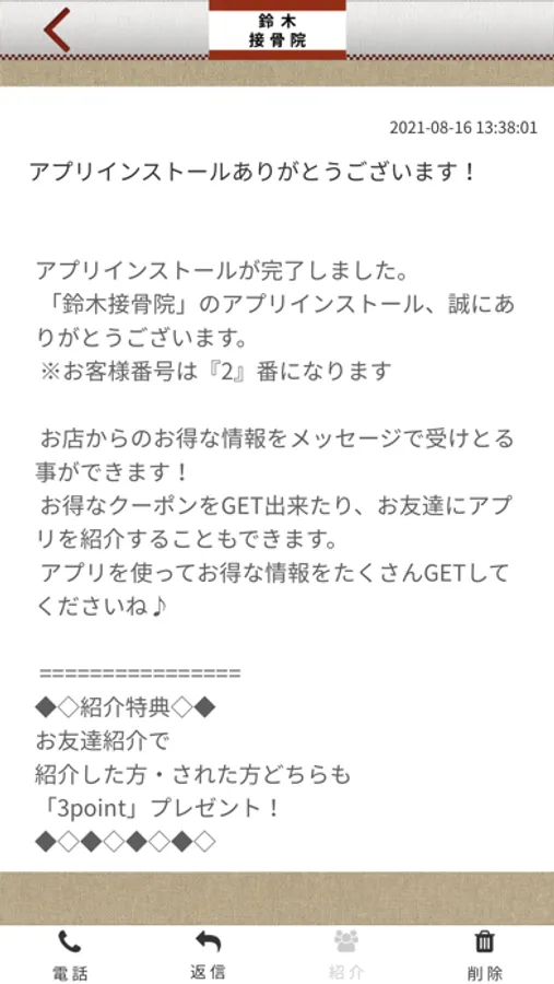 鈴木接骨院のアプリをSNSを通じてお友達に紹介する事ができます。