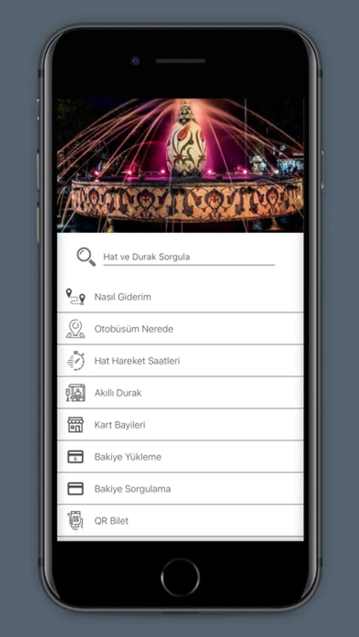 Uygulama Fonksiyonları : Nasıl Giderim, Otobüsüm Nerede, Duraklar, Bakiye Sorgulama, Bakiye Yükleme, Ücret Tarifesi, Yetkili Bayi ve Kart Merkezleri ve QR Bilet