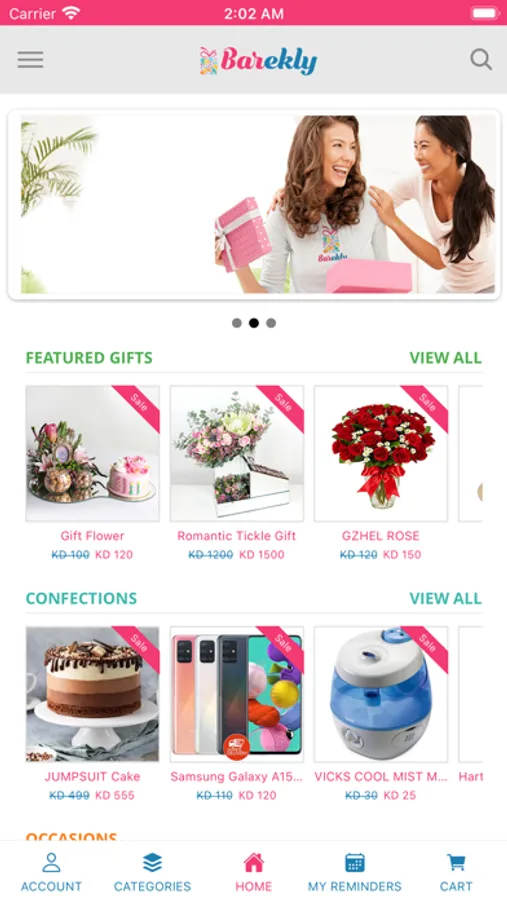 We at BAREKLY care about your special events, that's why we developed our smart My Reminders feature, which allows you to save all the important dates you care about, and we will remind you and recommend the best possible gift suitable for each occasion you saved.