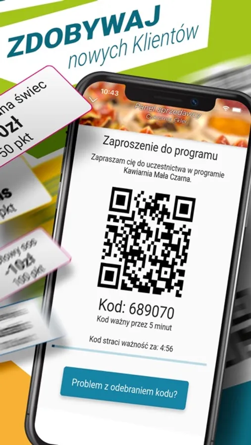 3. Intuicyjność. Aby przekazać punkty za zakupy, po prostu klikasz i generujesz kod QR, który dajesz do zeskanowania klientowi. Podobnie odbywa się odbieranie nagród.