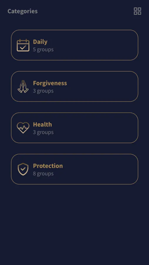 Duas grouped together based on occasions, events, etc. Categories are illustrated with the beautiful icon to get a premium look and user-friendly application.
