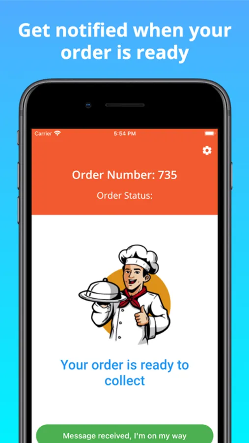 If you leave the app open it will start buzzing when your order is ready, just click the green button to confirm you are on your way and it will stop buzzing. Otherwise you will receive a notification anyway. Just make sure you keep your phone near you and switch off silent mode.