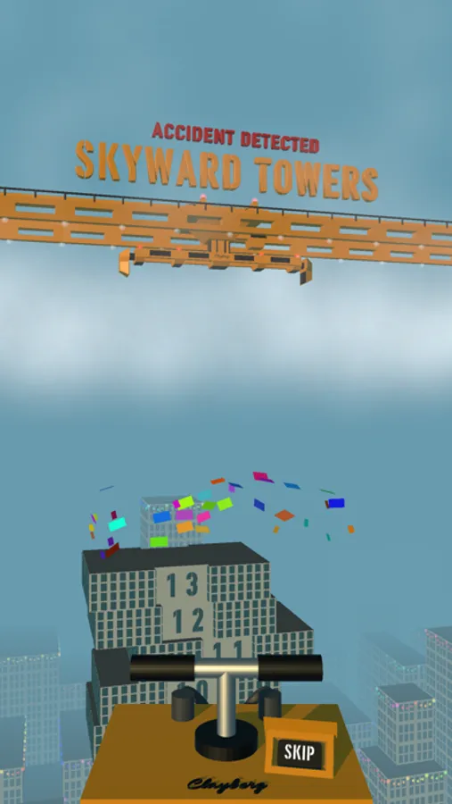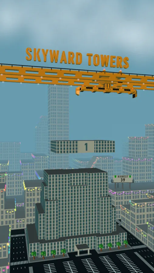 Skyward Towers is an endless stacker game. The player tries to stack the building segments as high as they can. The crane moves faster and faster, increasing the difficulty of the game as the tower grows. Once a segment is misplaced or the tower tips over, the building is deemed too dangerous, and must be demolished.