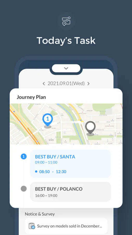 - Planning and scheduling multiple workplace visits are possible with a few clicks and shared in real time. The movements during travel are captured on a digital map for you to track and monitor.