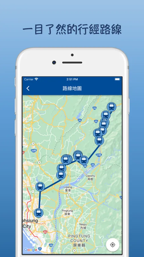 漂亮簡單的操作介面,提供公車即時動態給您!