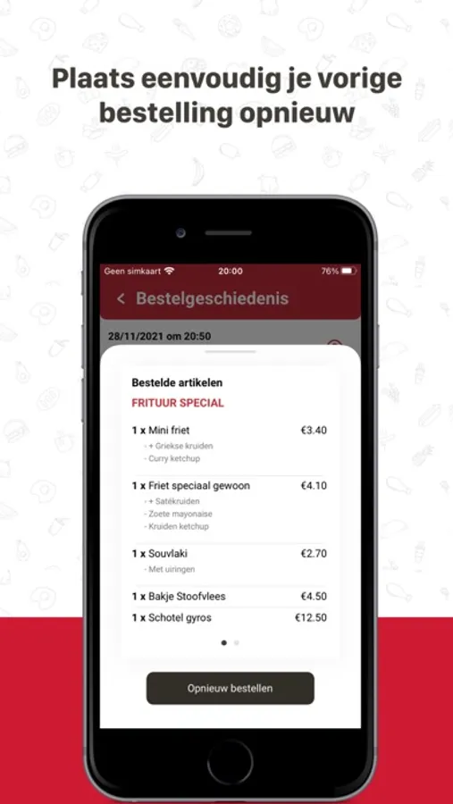 Via de favorieten functie of je bestelgeschiedenis ben je slechts enkele vingerdrukken verwijderd van een nieuwe bestelling. Echt handig!