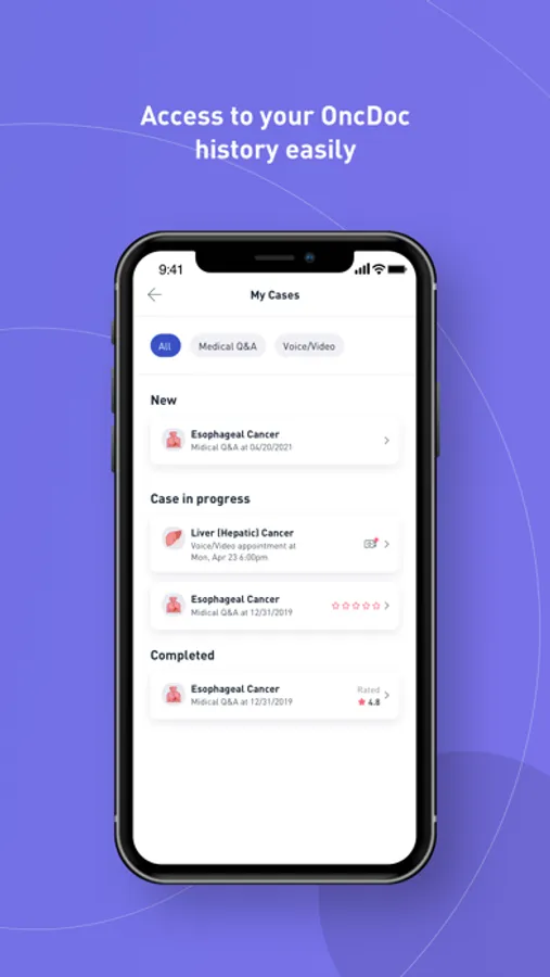 OncDoc helps you connect with healthcare organizations you would like to visit. You can quickly request a virtual consultation with a healthcare provider and schedule an in-person visit right after the conversation on OncDoc.