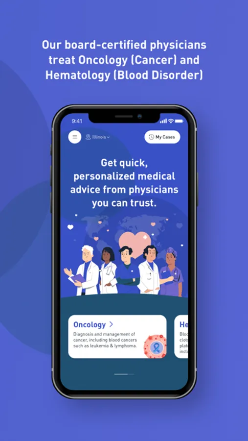 - Download and open the OncDoc app: Select a healthcare organization you would like to visit and provide supporting information for physician review.