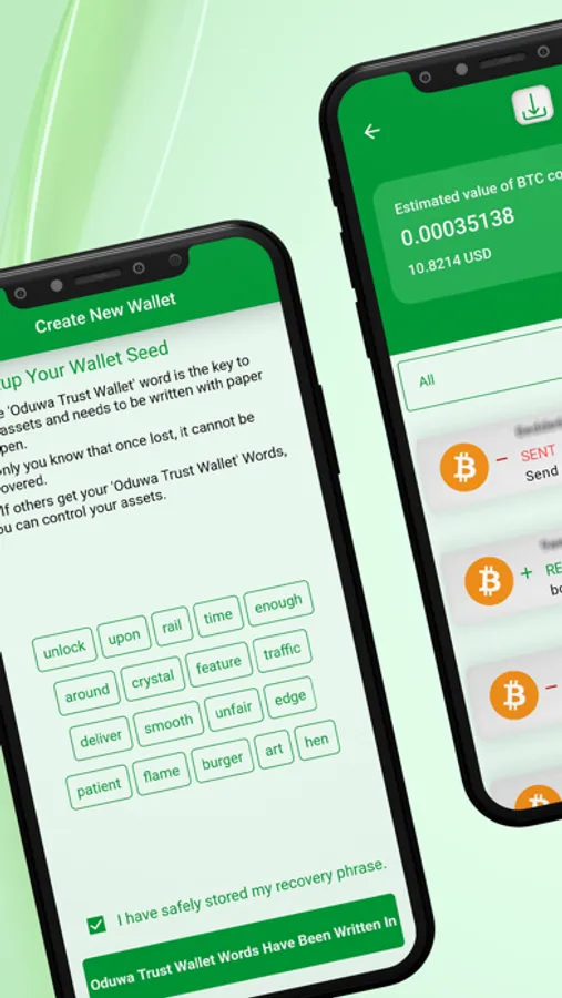 Oduwa Trust Wallet is a decentralised wallet, where users can send & receive OWC, WOWC, OWDT, BTC, BNB.
