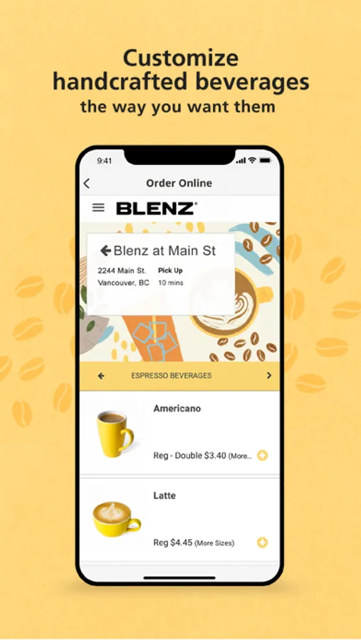 The Blenz online app, place orders, earn points and get offers on your phone.